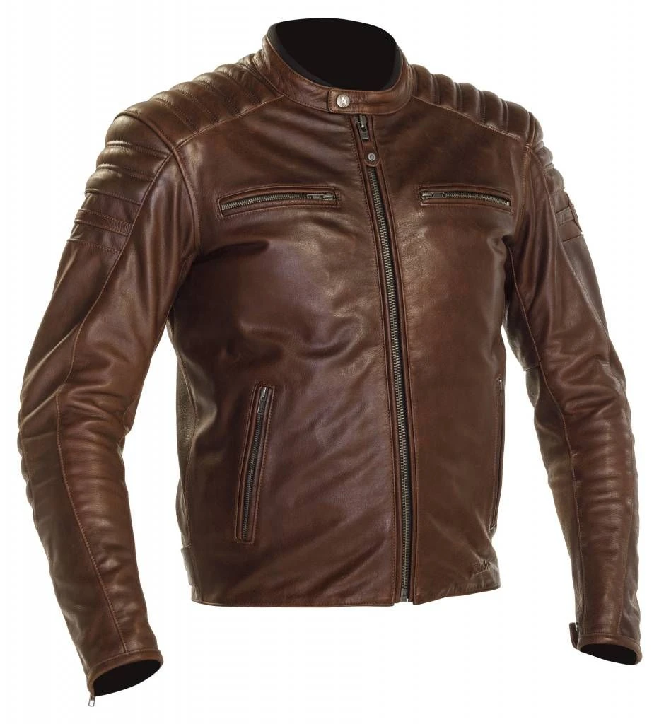 De luxueuze uitstraling is in de basis afkomstig van het vintage bewerkte buffelleer dat tevens de slijtvaste buitenlaag vormt. Onderhuids nemen de D3O protectoren het stokje over. Door flexibele protectoren op de schouders, ellebogen en rug aan te brengen wordt niets aan het toeval over gelaten. Dit zonder in te hoeven boeten op het draagcomfort.