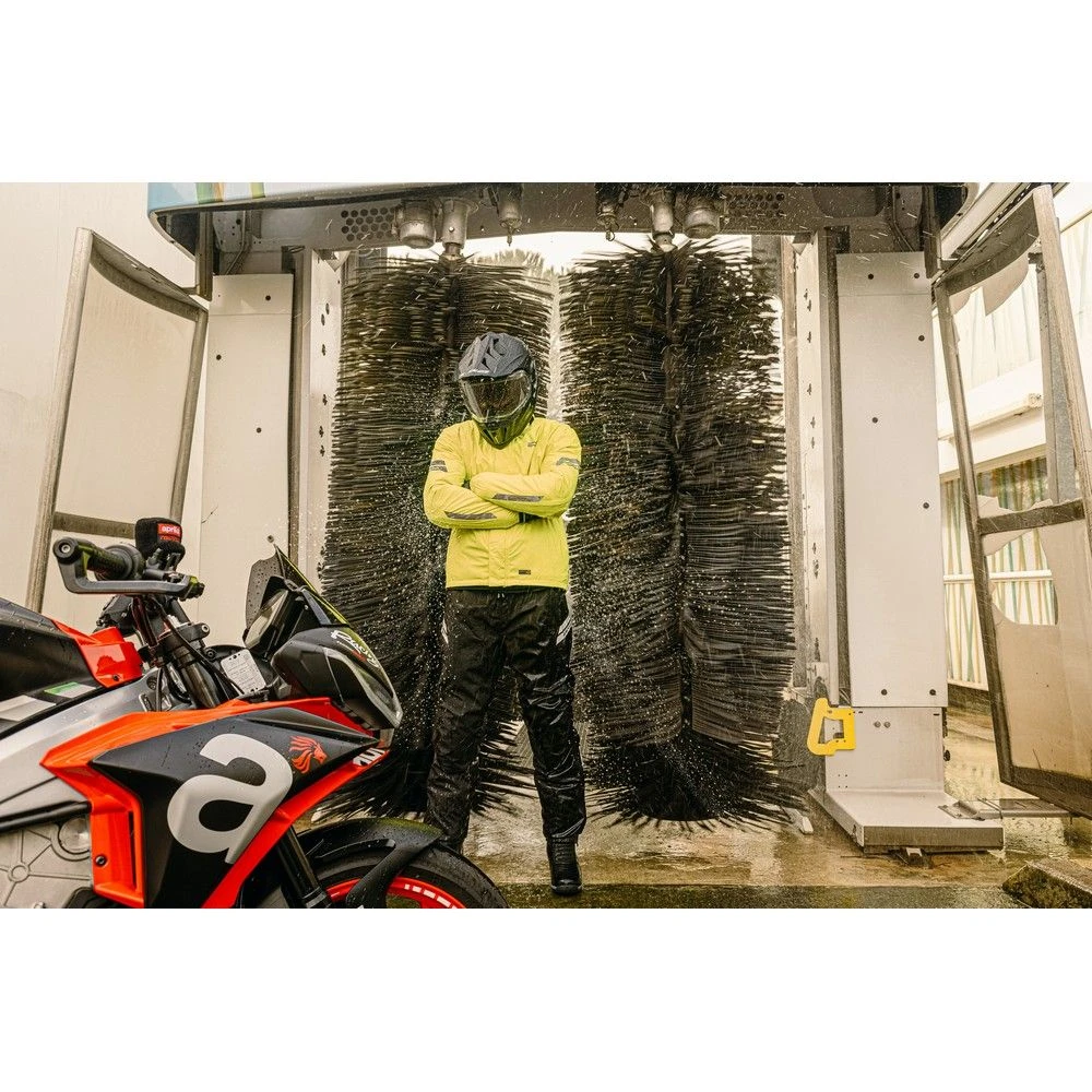 De capuchon vouw je eenvoudig op in de kraag als je hem niet gebruikt, en hij kan ook onder je helm gedragen worden voor naadloze bescherming tegen de elementen – zelfs bij het slechtste weer.