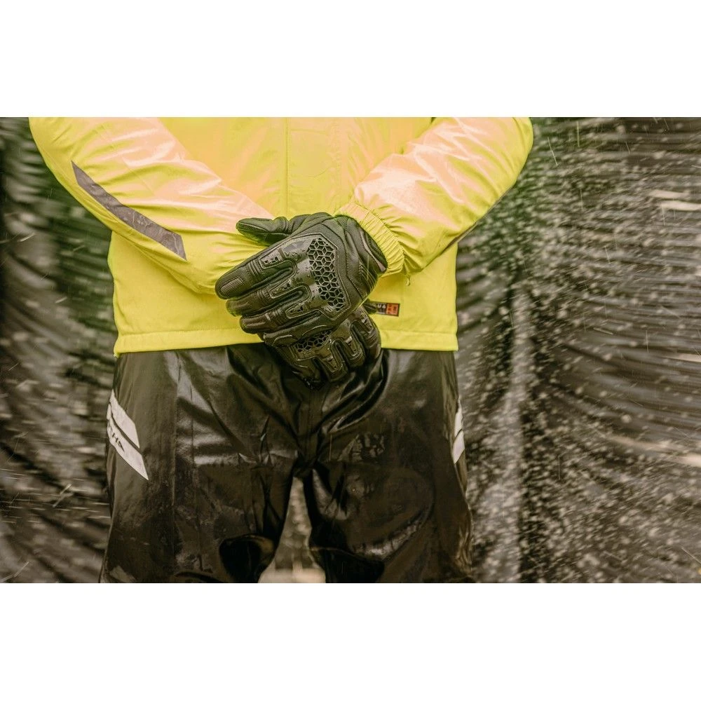 Onze Rain Stretch 2L Hoodie is verkrijgbaar in zwart en fluorescerend geel voor hoge zichtbaarheid. Hij is ontworpen om over je onderlagen en protectiekleding te dragen, zodat jij én je uitrusting droog blijven!